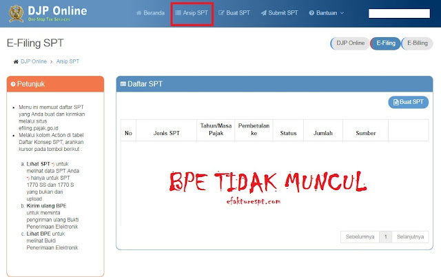 Solusi Tanda Terima BPE eFilling Pajak DJP Online Tidak Muncul eFaktur dan eSPT
